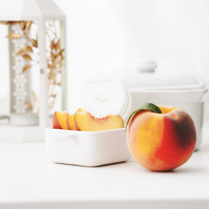 Le Musc Tahara Pêche est présenté dans un élégant pot en verre facilement transportable, avec un opercule protecteur pour préserver la qualité de son doux parfum. Disponible en contenances de 5g et 15g.
